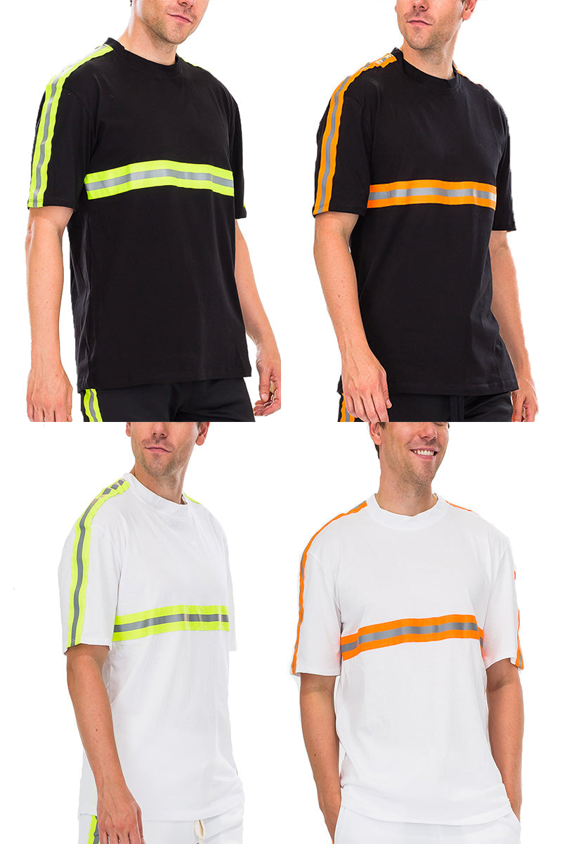 Stand out day or night with this reflective stripe tee. Made from 100% breathable cotton, it features reflective tape across the chest and sleeves for a modern, athletic look. Designed with a straight hem and regular fit, making it perfect for workouts or casual wear