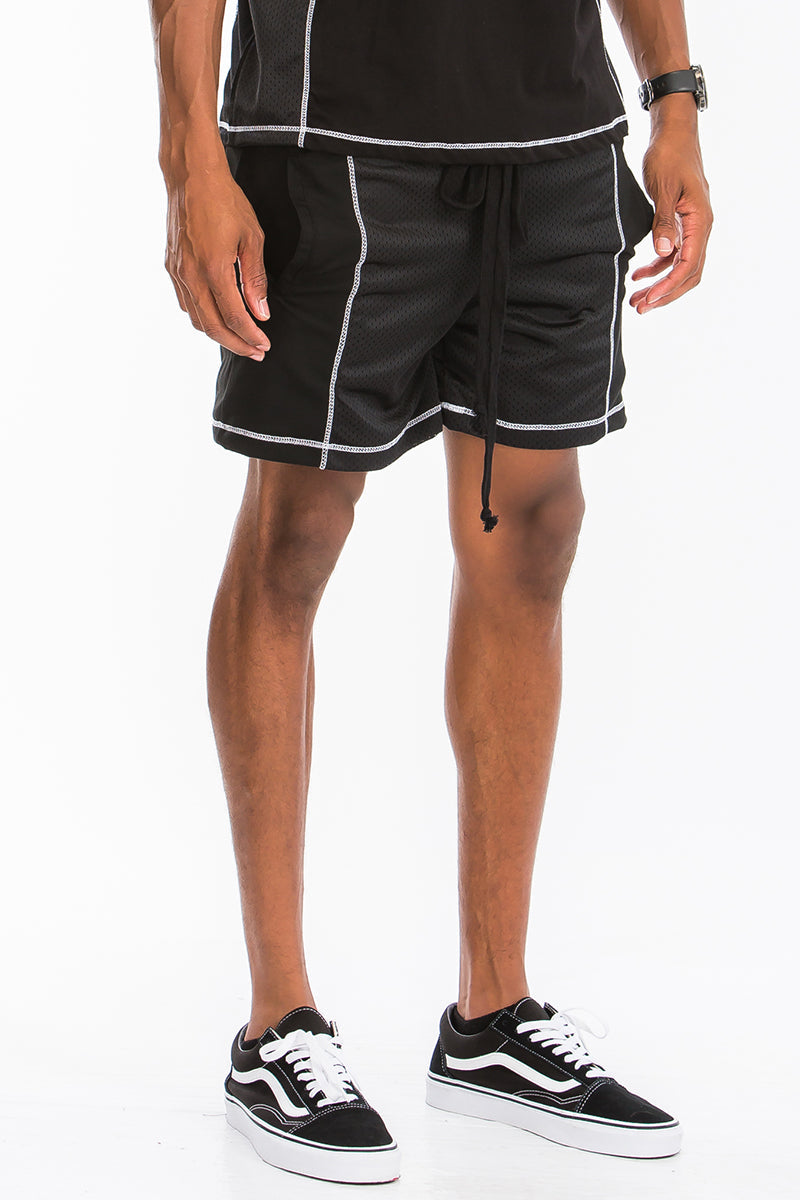 Black and white mesh set with contrast stitching. Lightweight, breathable, and perfect for sports or casual wear.